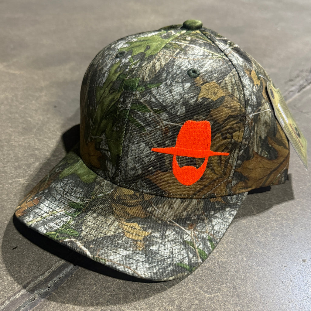 Mossy Oak SnapBack with Blaze Orange Demun logo.